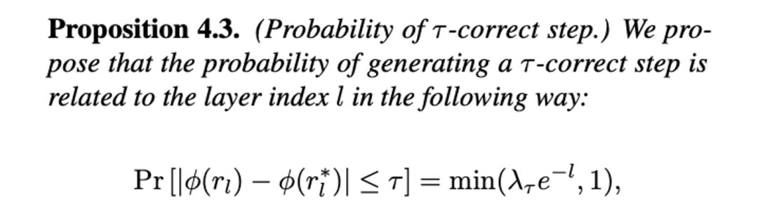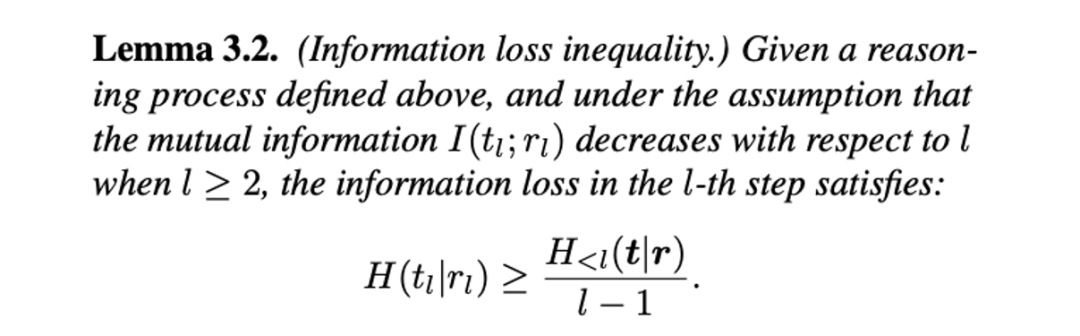 此定理表明,在推理的第 l 步,错误概率的下界受累积信息损失 H_(<l) (t|r) 影响,由于其累加的定义,这一损失至少会随推理步数 l 线性增长。