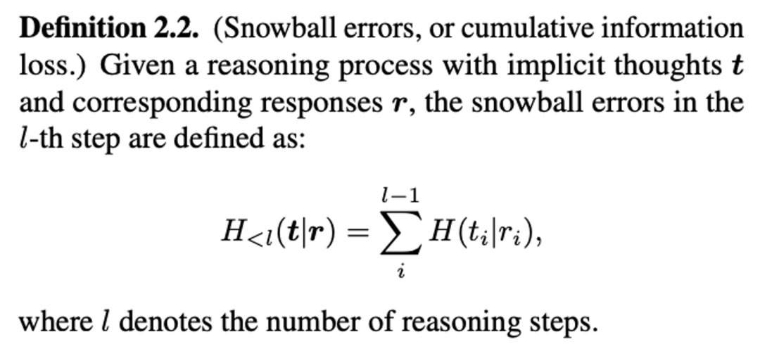 而最终的雪球误差则可以定义为在所有推理步骤上信息损失的累积: