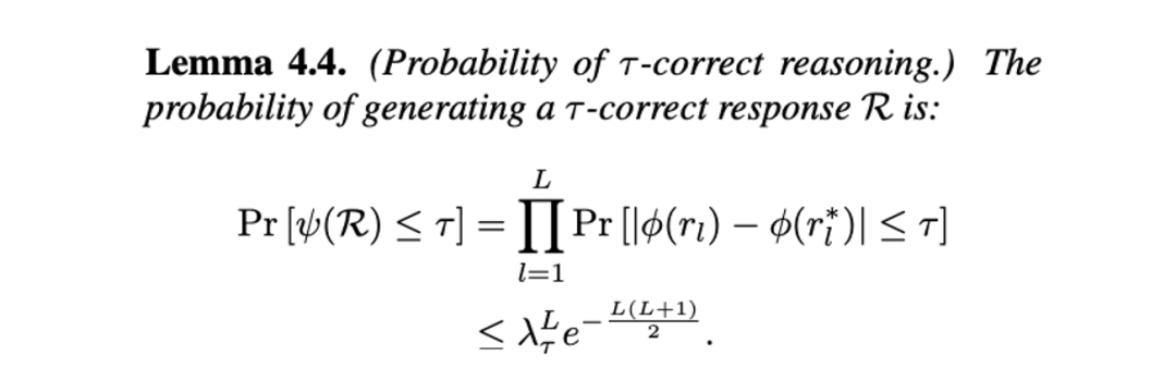 由此假设,研究者推导出在雪球误差存在时,最终得到一个正确的完整推理过程的概率: