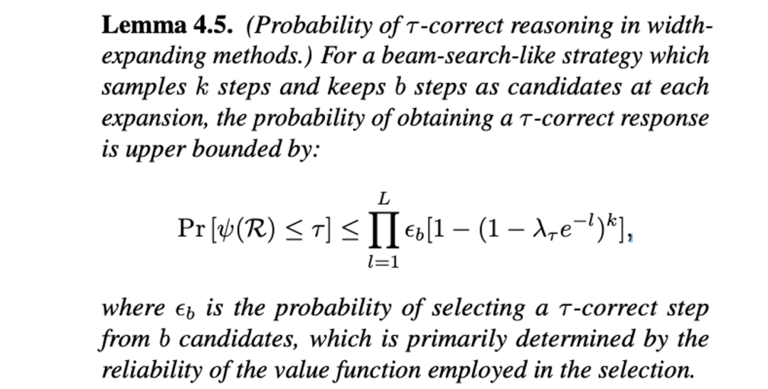 研究者将分析结果形式化为一个数学引理,进一步揭示了推理空间扩展与最优路径选择之间的平衡关系。