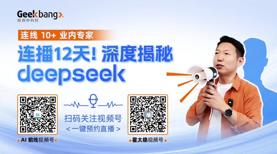 2 月 11 日至 2 月 27 日,AI 前线视频号、InfoQ 视频号、霍太稳视频号带来 DeepSeek 系列直播,解析 DeepSeek 爆火背后的技术突破、商业化路径与行业影响。从 纯强化学习复现 o1 能力到算力控制,从创新文化到 AI 竞争格局,每场直播都深度解析一个关键问题。
