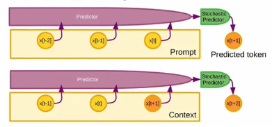 问题在于,当前的机器学习技术还远远不够,我们没有足够的技术来构建具备相同学习能力、常识和对物理世界理解的机器。动物和人类拥有“常识”,能够非常快速地学习新任务、理解世界的运作方式,并具备推理和计划的能力,行为由目标驱动。而 目前的 AI 系统,并不具备我们所需要的特性。原因在于,这些系统基本上是通过自回归方式逐个生成 token 来构建输出,依赖一个预测器在 token 序列上重复操作,通过查看前面的 token 窗口来预测下一个 token。在训练过程中,系统被输入一个序列并复现该序列,但由于因果结构(Causal Architecture)的限制,系统只能依赖前一个 token 来预测下一个 token,无法通过特定输入预测自身。