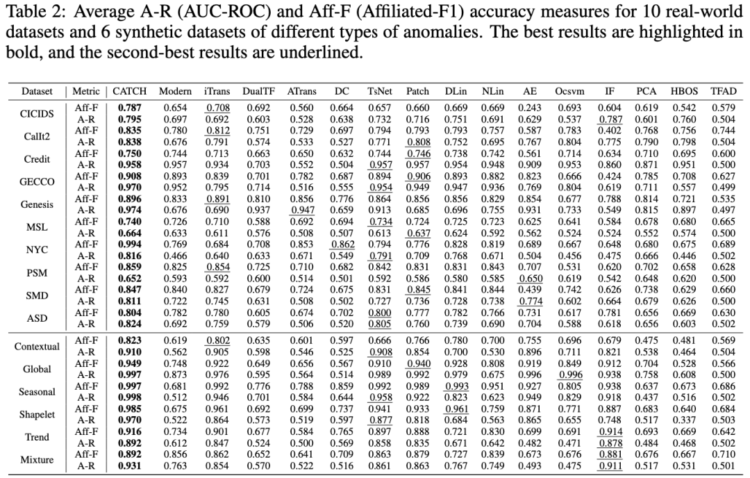 CATCH 在10个真实数据集和12个合成数据集均领先于当前最先进模型。