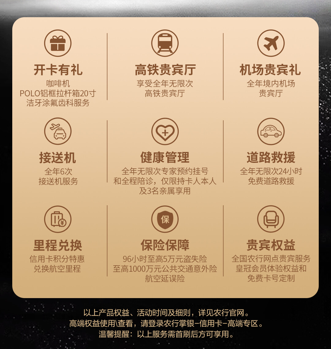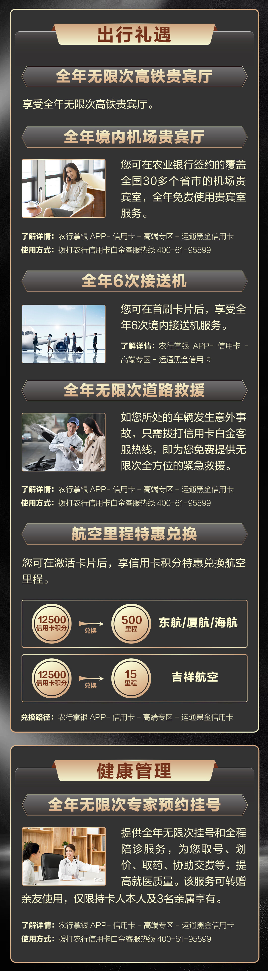 不过这并不是全体农行信用卡可享的福利,而是只针对农行新推出的高端信用卡 - 黑金卡。