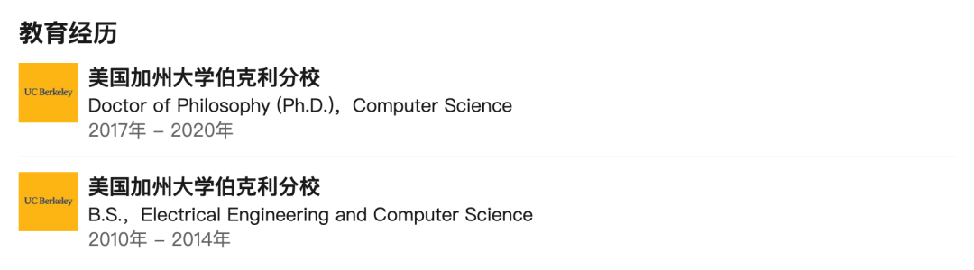 他在加州大学伯克利分校获得了计算机科学博士学位,导师为该校教授、深度强化学习大牛 Pieter Abbeel。之后从事机器人和强化学习研究与工作。在此之前,他还曾在伯克利短暂学习过神经科学,并在加州理工学院学习过物理学。