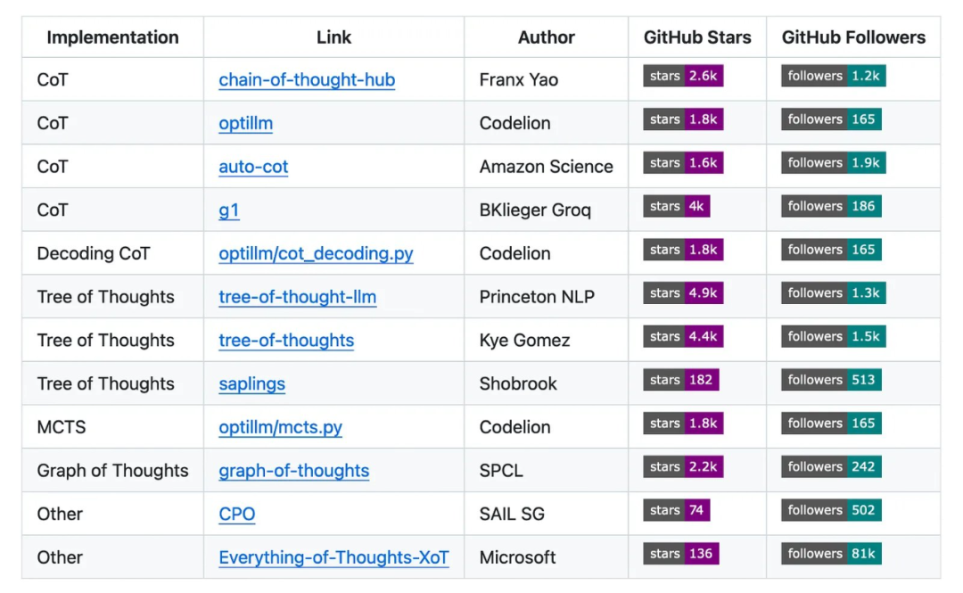 CoT 风格技术的一些实现,详见 https://github.com/ilsilfverskiold/Awesome-LLM-Resources-List