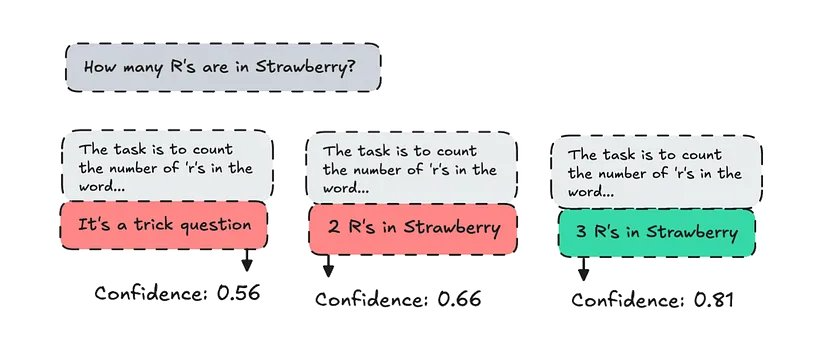 这种方法类似,只是它不仅要强制选择最可能的 token,还要查看整个响应的置信度分数。