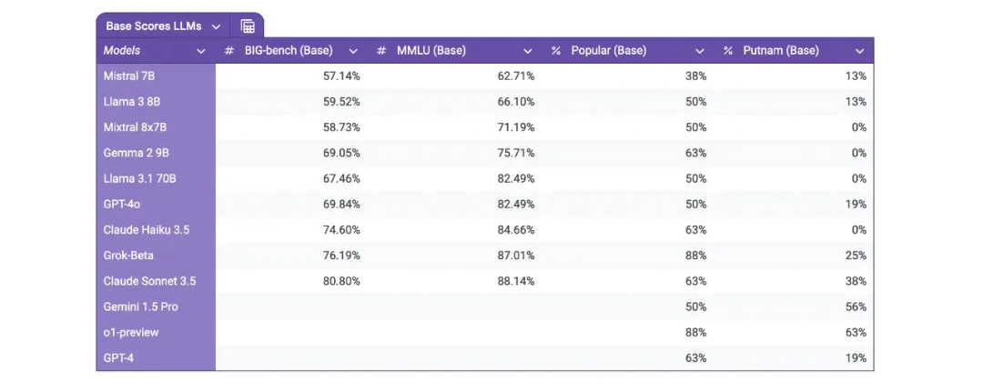 LLM 的基线分数