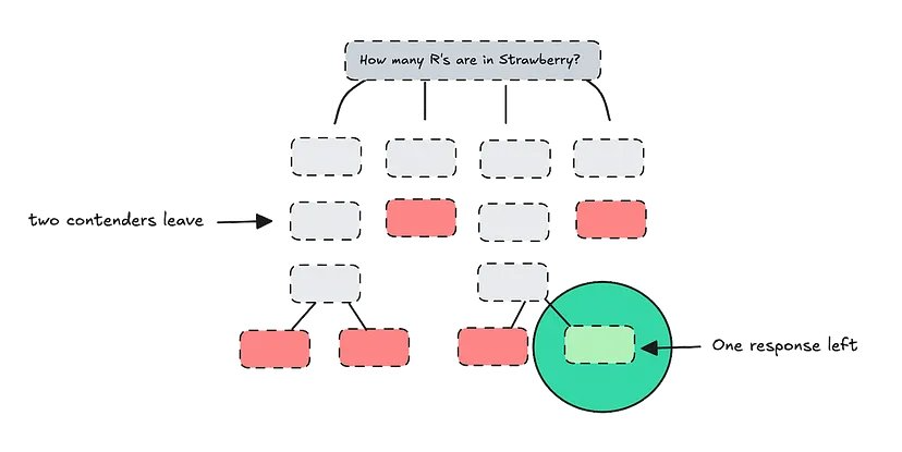 这也是为什么像蒙特卡洛树搜索(MCTS)这样的扩展可以提供更多无偏见的评估机制。MCTS 允许反向传播,这意味着它可以根据新信息重新审视和改进早期步骤,而简单的 ToT 只会向前移动。