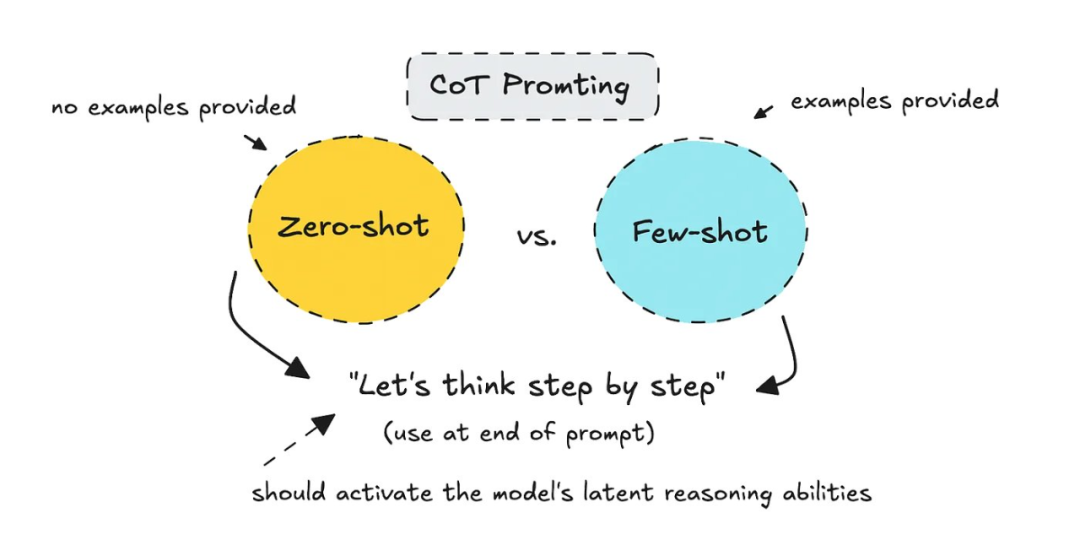 当时,人们只是以正确的方式进行提示,要求模型「一步步地思考」,要么通过零样本(不提供例子),要么通过少样本(提供几个例子)的方法。