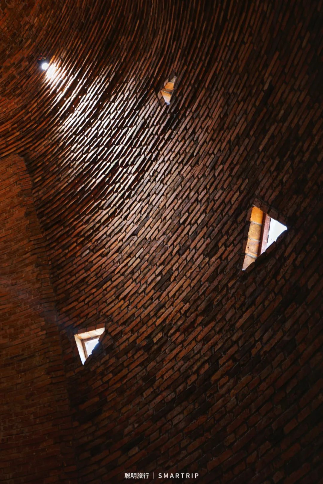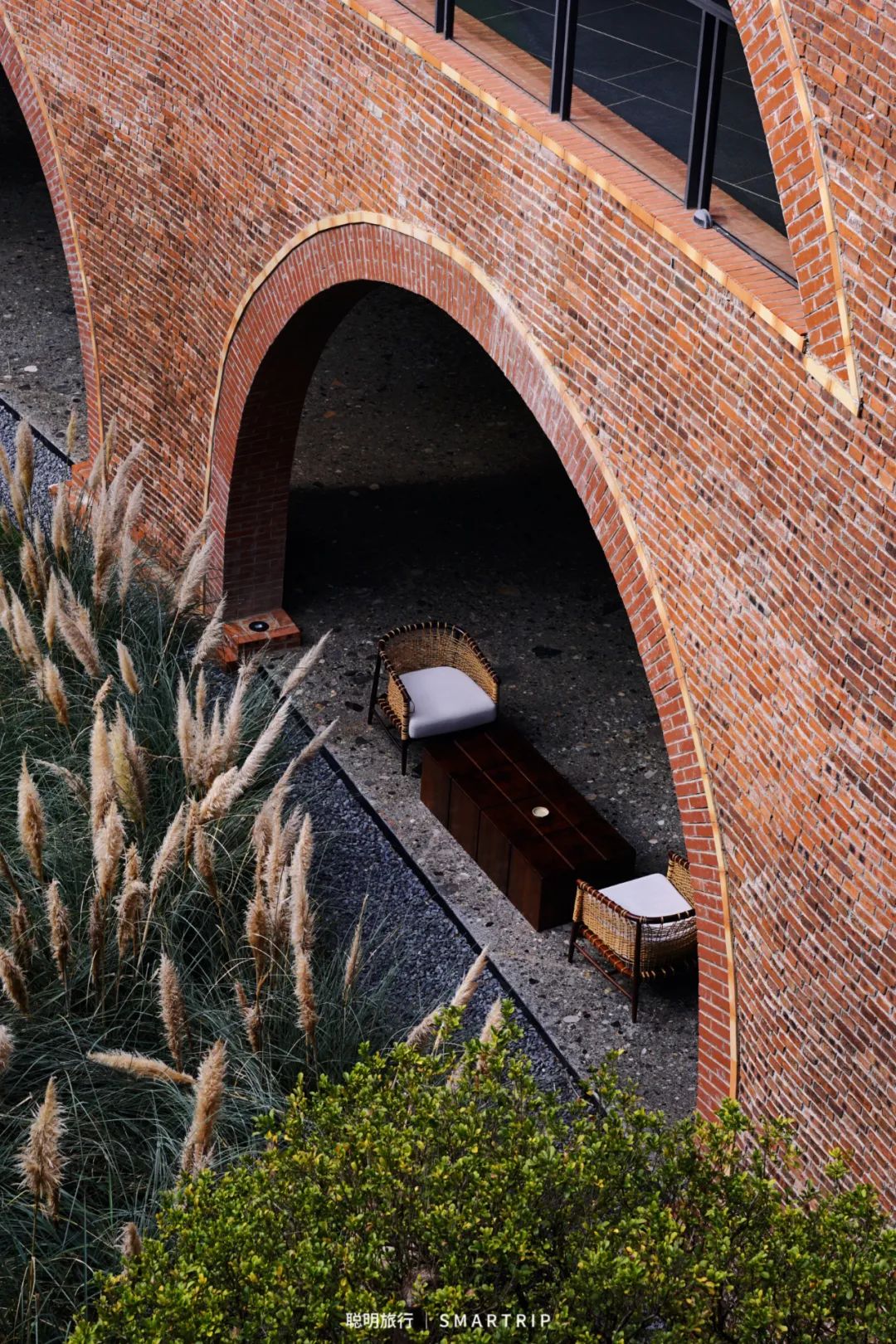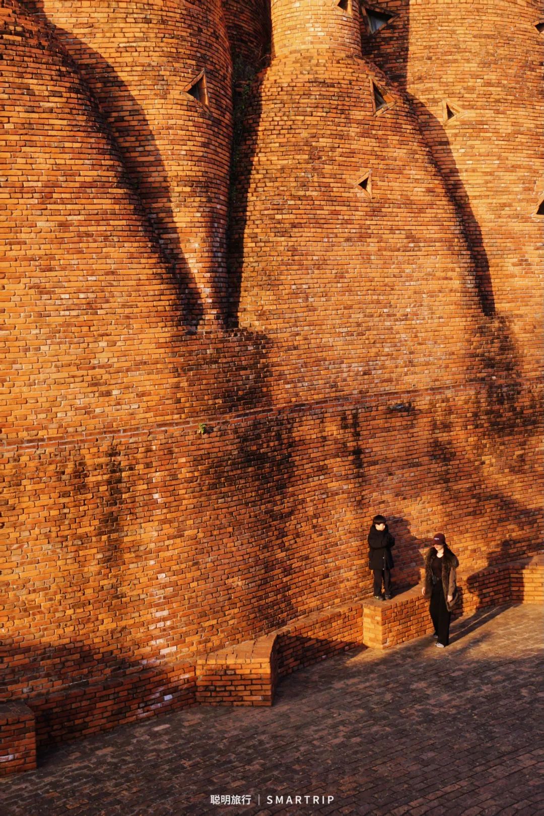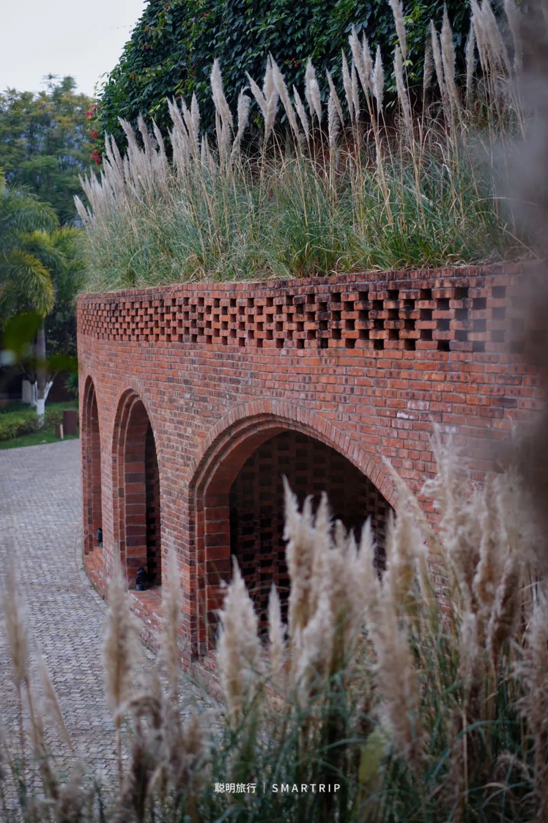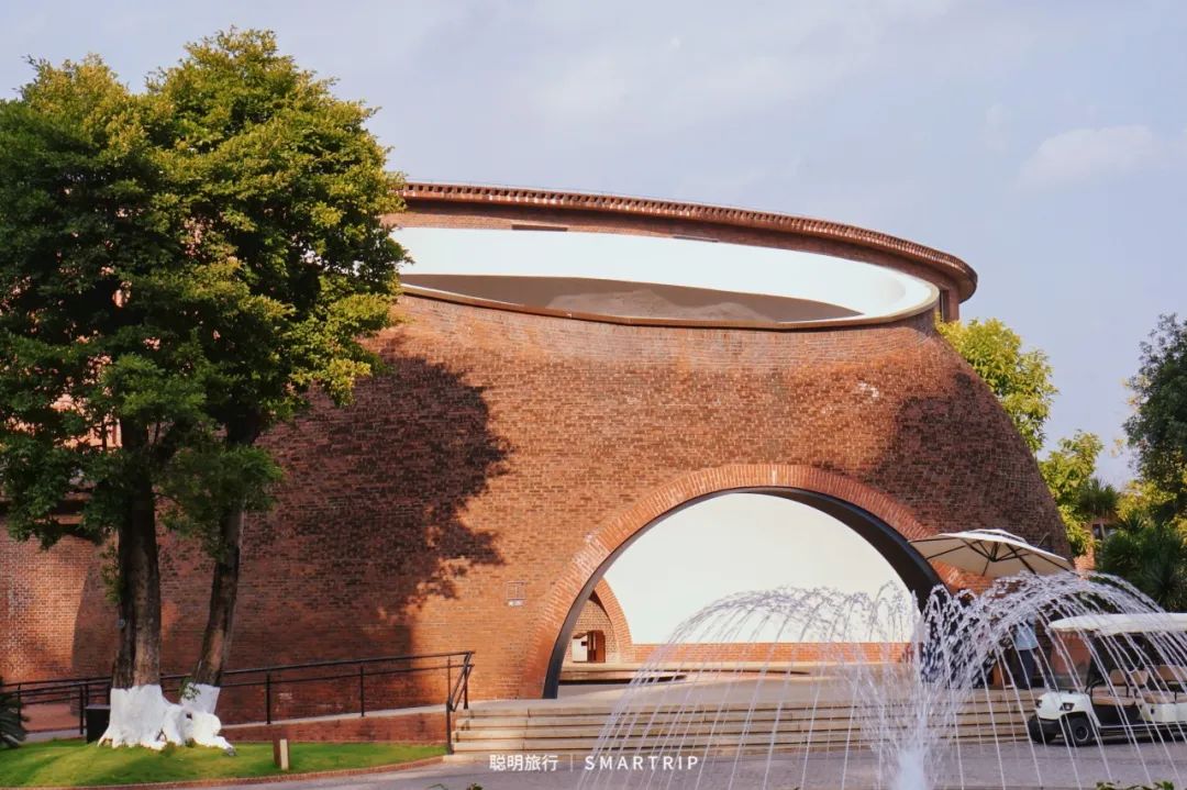 | 红砖和曲线 |每个角落都有不同的视觉效果,半圆形拱窗、水面倒影,红砖和曲线的艺术张力十分强大,一走一过都能轻松打卡出片。