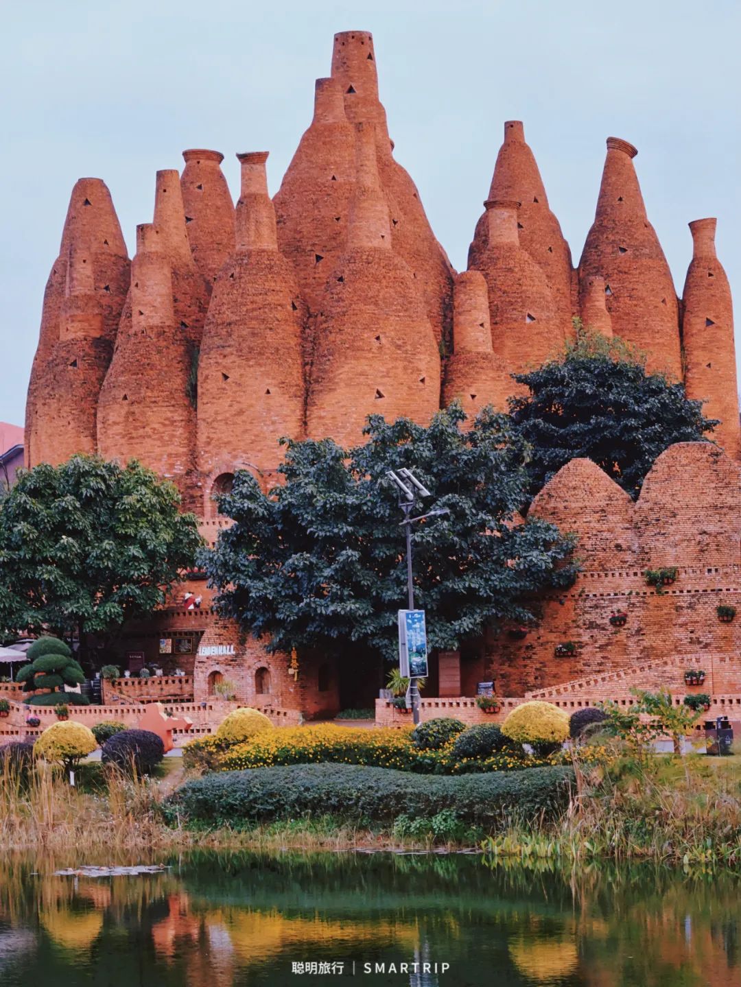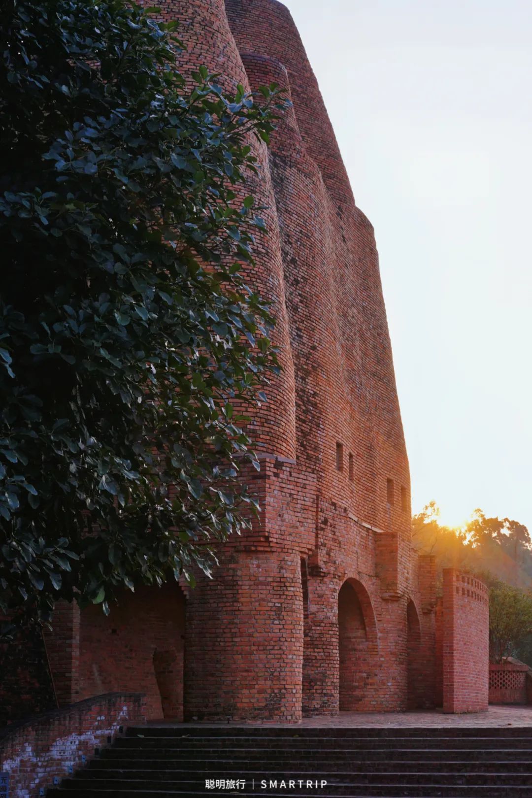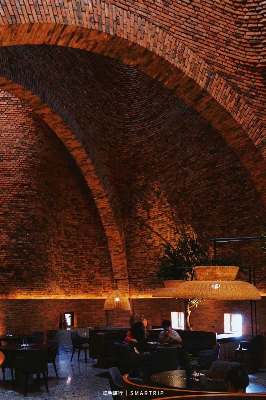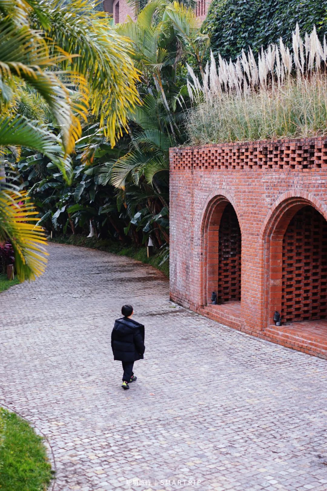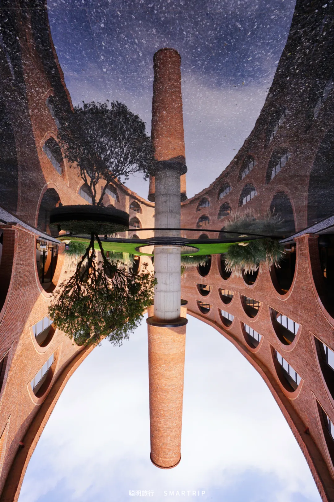 | 红砖和曲线 |每个角落都有不同的视觉效果,半圆形拱窗、水面倒影,红砖和曲线的艺术张力十分强大,一走一过都能轻松打卡出片。