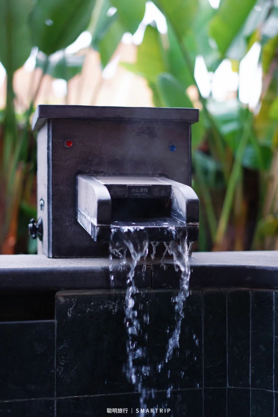 5号楼一层的泡池房,温泉水属低矿化碳酸泉,水温可以达到45℃,泡过后的皮肤非常非常滑。