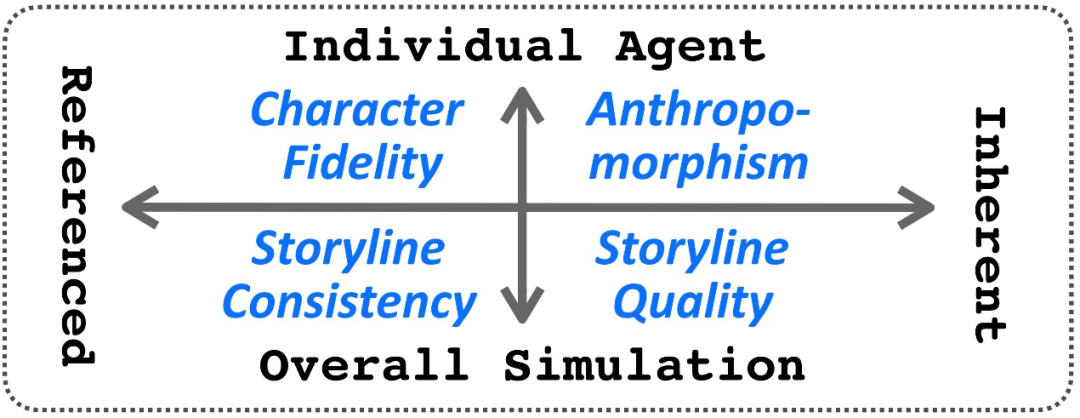 本文将评估维度按照 1. 关注自身质量 or 关注忠于原作;2. 关注单一角色 or 关注整体模拟,分成了以下四个维度。
