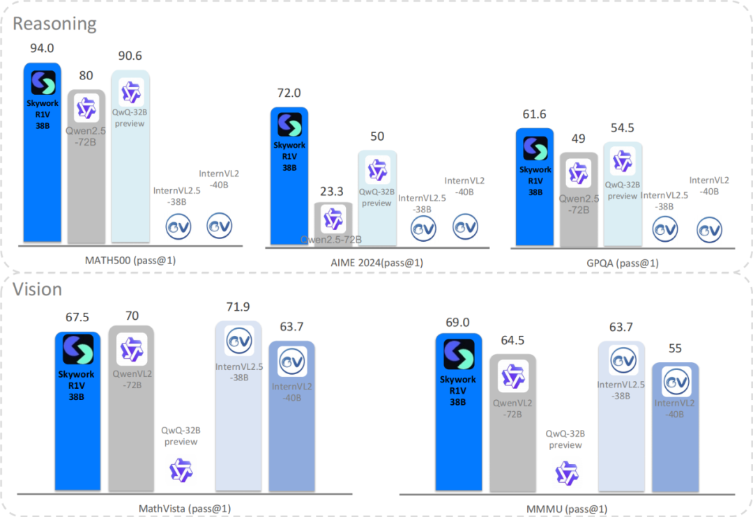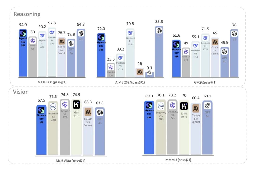昆仑万维开源Skywork R1V多模态模型,实现SOTA级视觉推理和通用推理,成为首个数学推理能力接近OpenAI o1的开源多模态模型。
