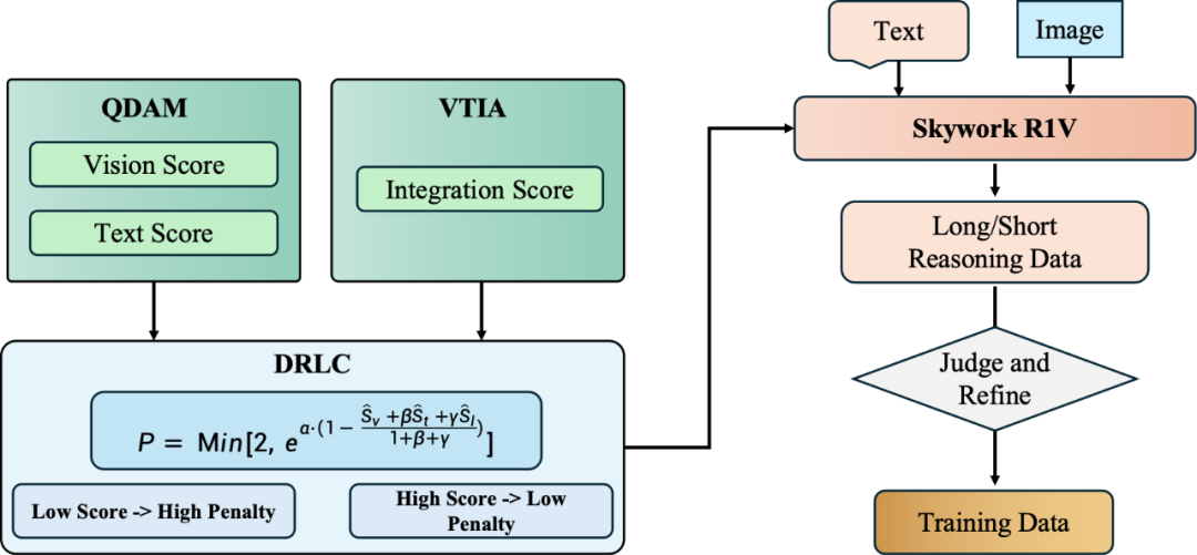 作为一个 VLM 推理模型,R1V 采用高效的多模态迁移方法,最大程度保留了文本推理能力,同时优化视觉任务表现。同时,R1V 提出通过混合优化策略来加强视觉文本对齐,显著提升了跨模态集成效率。最后,R1V 引入自适应长度思维链蒸馏方法来生成推理数据。