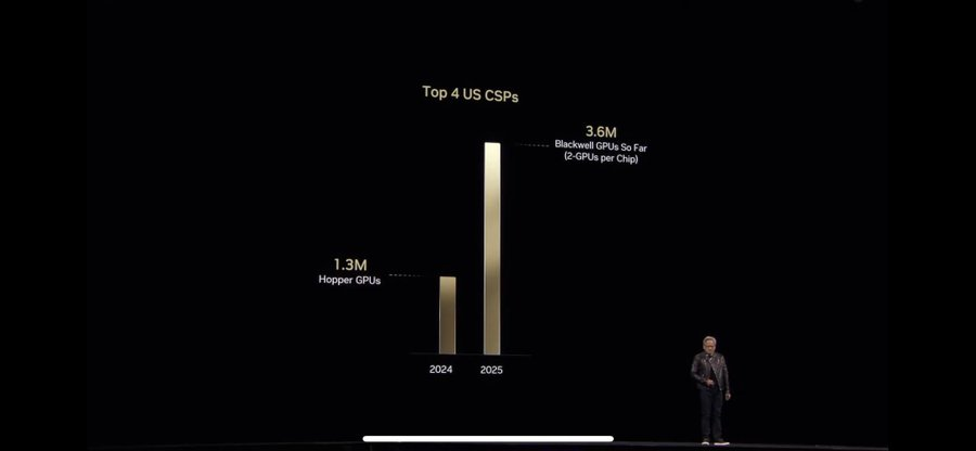 英伟达表示,四大云计算公司部署的 Blackwell 芯片数量是 Hopper 芯片的三倍。云提供商可以使用 Blackwell Ultra 为时间敏感型应用程序提供高端 AI 服务,从而使其从新芯片中获得的收入达到 2023 年推出的 Hopper 一代的 50 倍。