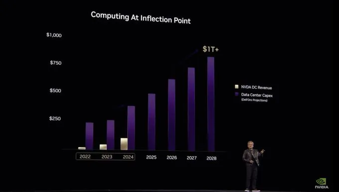 为此,黄仁勋对数据中心业务相当有信心,“我之前说过,我预计数据中心建设将达到 1 万亿美元。我相当确定我们很快就会达到这个目标。”