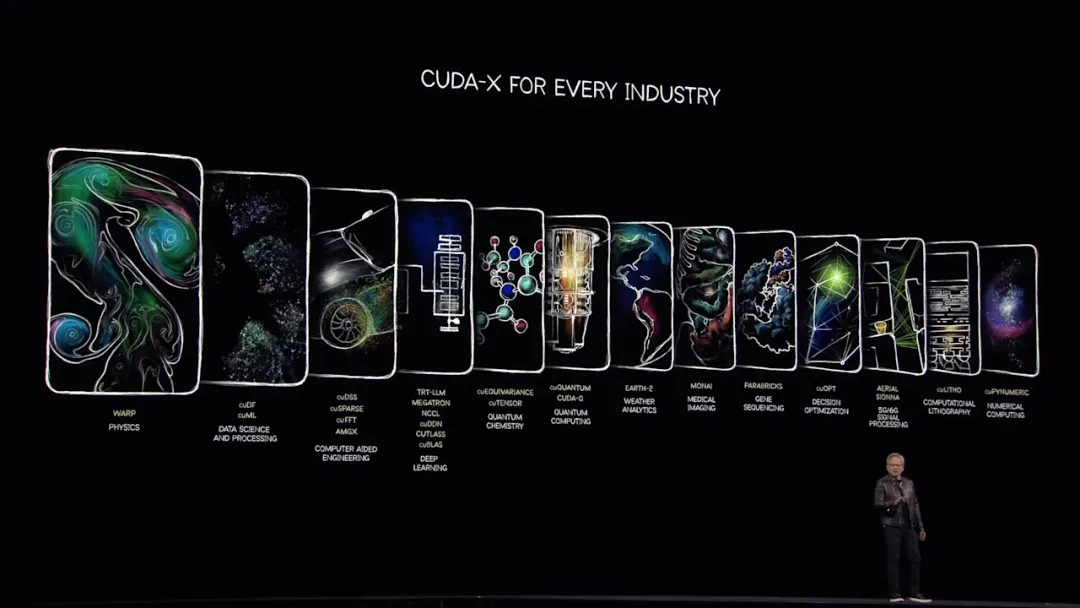 黄仁勋表示:“这只是实现加速计算的众多库中的一小部分。”所有这些库都依赖 NVIDIA 的 CUDA 核心来完成工作,“如果没有 CUDA 以及我们拥有如此庞大的使用基础,这些库不会对使用它们的开发人员有任何作用。”