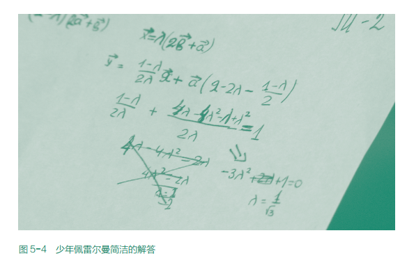 “请看一下格里沙的答案的草稿,别的学生回答同一道题,需要用好几张纸反复计算,而格里沙只用了三行就完成了整个证明。他用他丰富的想象力得出了这样简洁美丽的解法。”