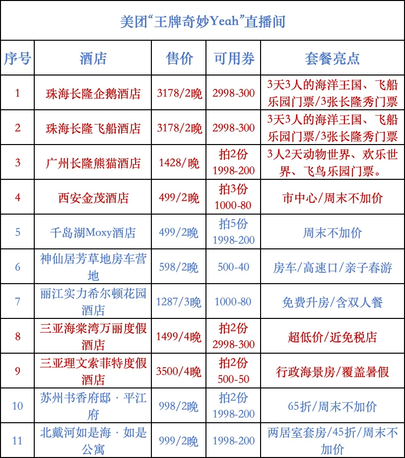 美团酒店直播间福利来袭!长隆酒店套餐门票超值送,江浙沪、三亚多地度假酒店抄底价,速来抢购!