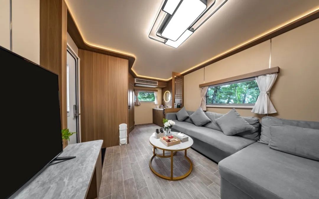 房车内布局合理,设备齐全。每个房车都有一个大院子,还有餐桌、摇椅,春天去露营特别惬意。