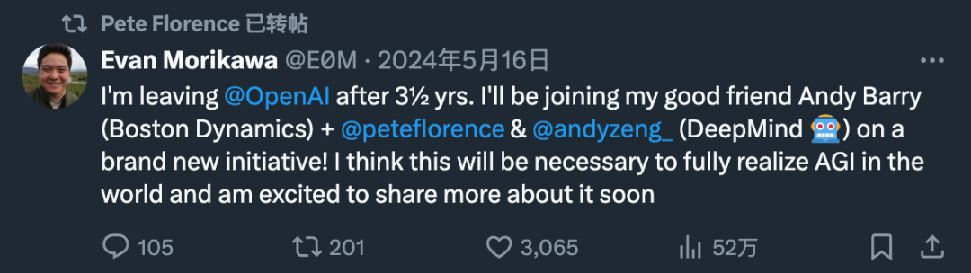 OpenAI 前工程负责人 Evan Morikawa,曾领导过 ChatGPT、GPT-4、DALL・E 和 API 上线,从 OpenAI 离职后加入了这家初创公司。