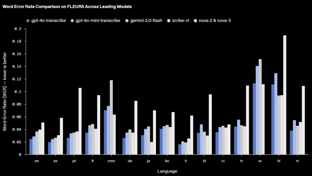 据介绍,它们实现了新的 SOTA 水平,在准确性和可靠性方面优于现有解决方案——尤其是在涉及口音、嘈杂环境和不同语速的复杂场景中。这些改进提高了语音 / 文本转录应用的可靠性,新模型特别适合客户呼叫中心、会议记录转录等用例。