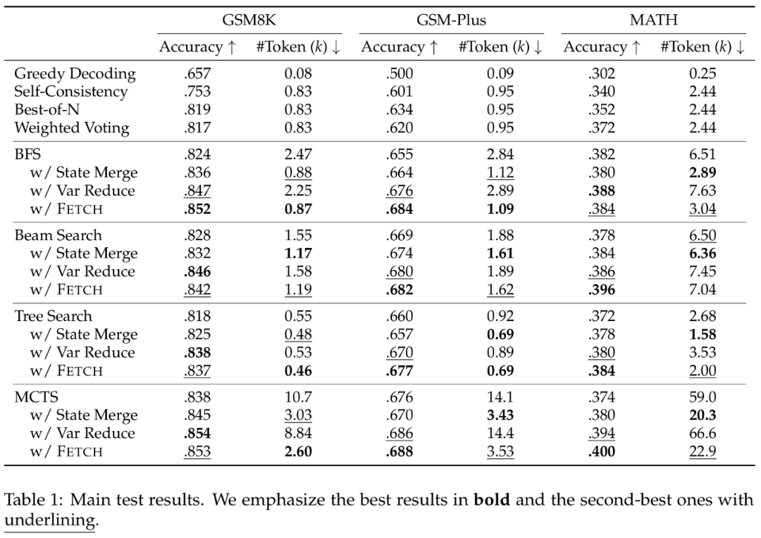结果表明,Fetch 在 GSM8K、MATH 等基准测试中展现出显著优势:相较传统树搜索算法,框架实现了计算效率和性能的同步提升。该成果为提升大语言模型推理效能提供了新的方法论支持。