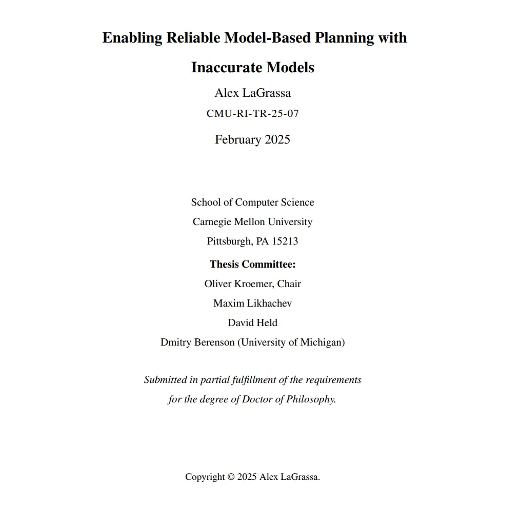 CMU博士论文提出在模型不准确的情况下,通过学习模型局限性,结合多种知识形式,实现可靠的机器人规划。