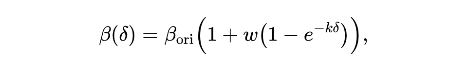 其中: 是初始默认缩放因子; 是一个参数,用于平衡动态部分的贡献; 是一个可调超参数,控制 随着 的变化速度。