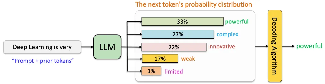 大多数LLMs以「自回归方式」(Autoregressive)操作,这意味着它们根据前面的「文本」预测下一个「字」(或token/sub-word)的「概率分布」(propability distribution)。这种自回归特性使模型能够学习复杂的语言模式和依赖关系,从而善于「文本生成」。