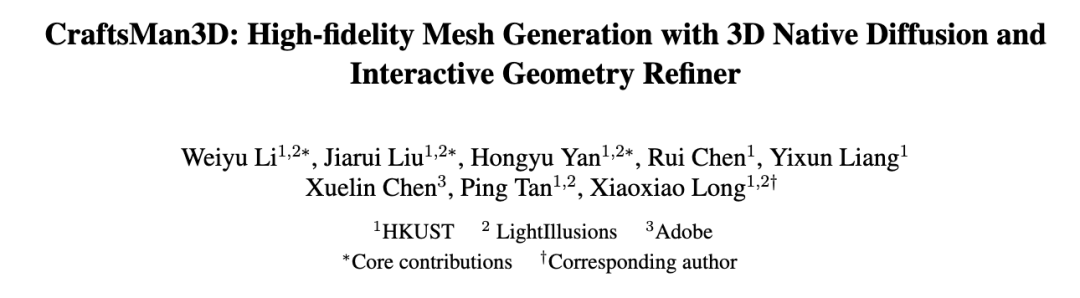 本文中 Craftman3D 的共同一作李威宇、刘嘉瑞和阎鸿禹均为香港科技大学博士研究生。Dora 的第一作者为香港科技大学博士陈锐。均为香港科技大学谭平教授组的在读博士生。