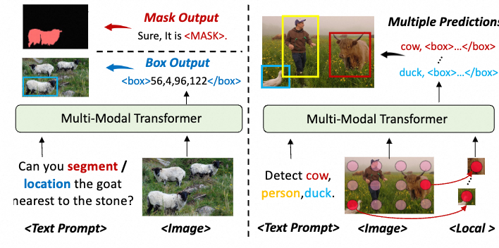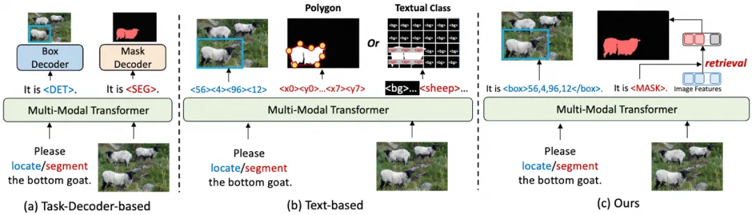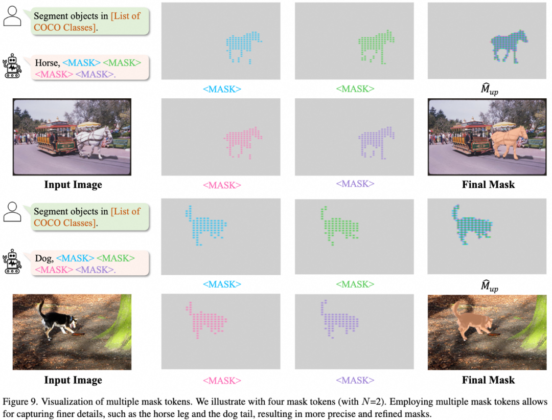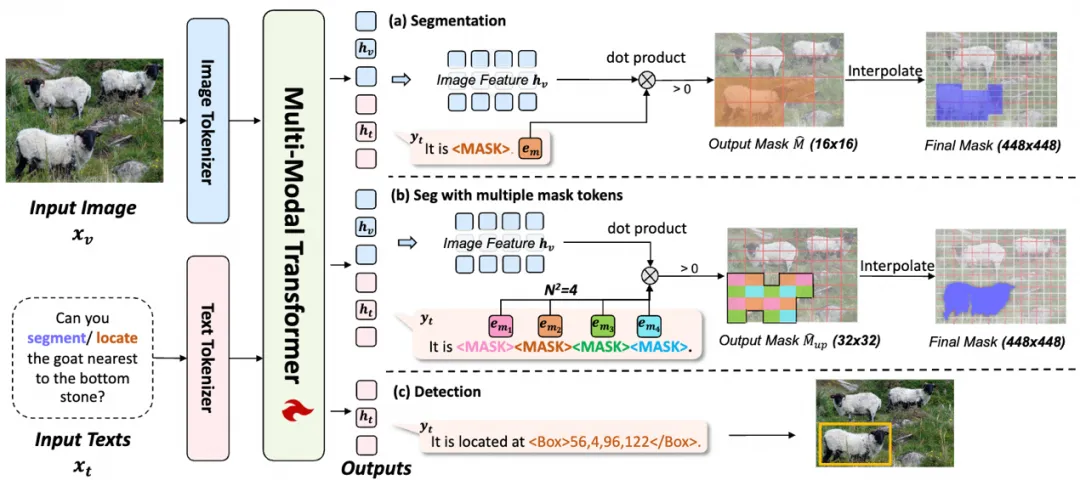 在执行分割时,模型被训练输出<MASK>标记,如上图(a)所示。给定输入图像