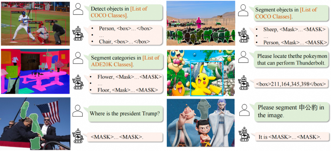 多模态大模型(MLLM)统一了视觉-语言任务,但在细粒度感知任务中(如检测、分割)仍依赖任务解码器(如 SAM、Grounding DINO),结构和训练非常复杂。