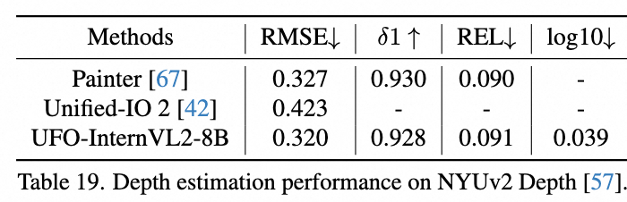 UFO 可以用类似分割的方式支持深度估计,取得具有竞争力的性能。