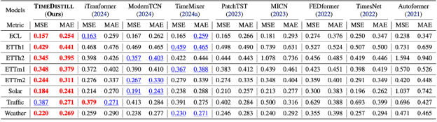 该方法通过蒸馏复杂模型的优势至轻量级模型,实现计算负担大幅降低的同时显著提升预测精度,为构建高效、高精度的时序预测模型提供了全新思路。