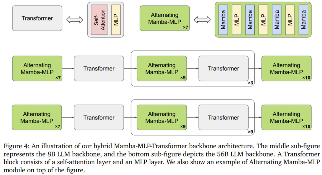 而今天我们介绍的 Cosmos-Reason1 系列模型则采用了 Mamba-MLP-Transformer 混合架构,如下图所示。