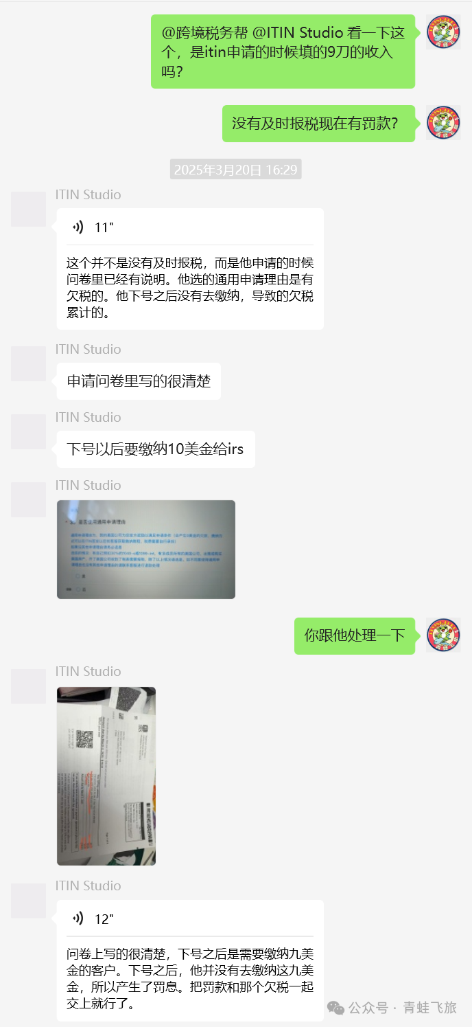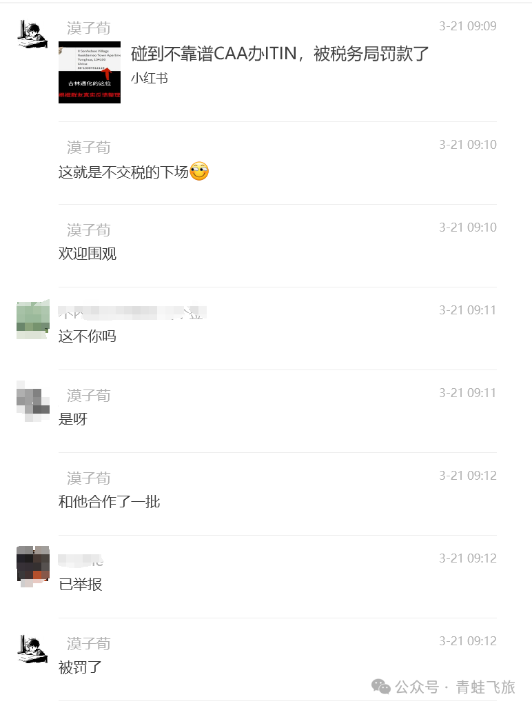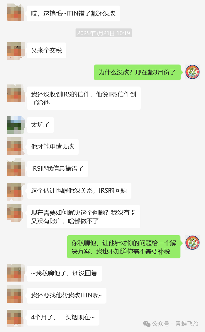 欢迎CAA大佬们进群采访客户和受害者们,相信会对国内ITIN办理流程有一个更深的认知,也会给小蛙一个正名的机会😁。