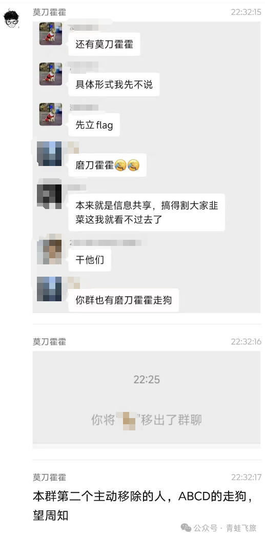 起因是@某风在小蛙群里未经小蛙同意在半夜发了一篇疑似引流的文章,小蛙群里有明确规定只能发单纯学习进步的文章,不能发涉嫌引流的内容。这个还得怪v啊!都怪他之前偷加太多人,都有人不堪其扰跟我投诉了,所以设定了群规,搞得小蛙也是受害者。。。