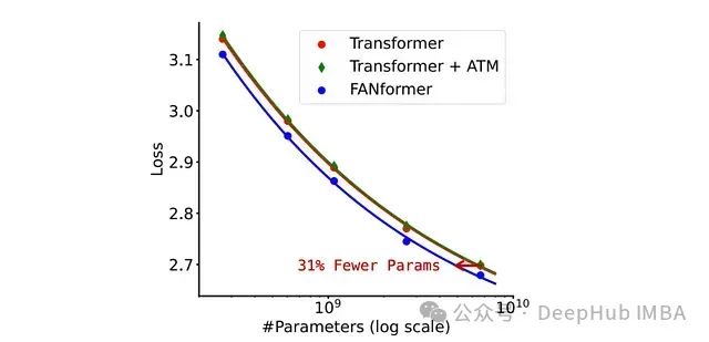 研究还评估了一个名为Transformer + ATM的FANformer变体,该变体使用MLP层替代FAN层。结果显示,其扩展曲线与标准Transformer非常接近,这表明周期性捕获能力的架构改进是FANformer性能提升的关键因素。