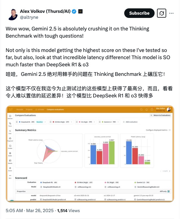 谷歌发布Gemini 2.5 Pro,号称在推理、编码、数学等方面超越OpenAI和DeepSeek,拥有百万token上下文窗口。