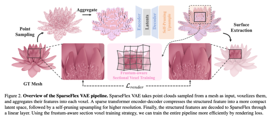除了核心的 SparseFlex 表示方法,TripoSF 同样在模型训练、重建与编解码上展现出了技术先进性。