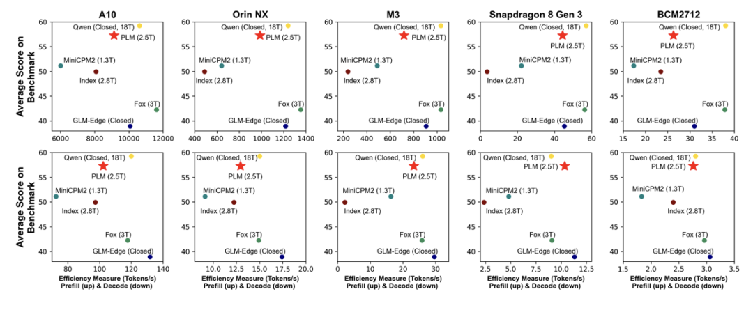 除了基本的模型能力评估,PLM 团队还在在 5 类硬件平台完成部署验证,并给出了实际的吞吐量数据。