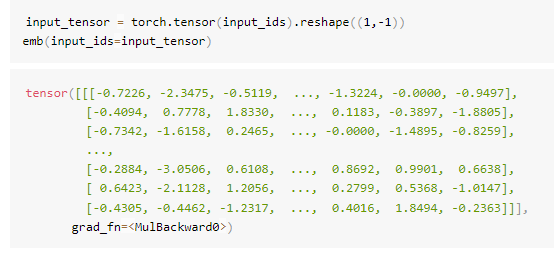 以下通过具体句子测试嵌入层: