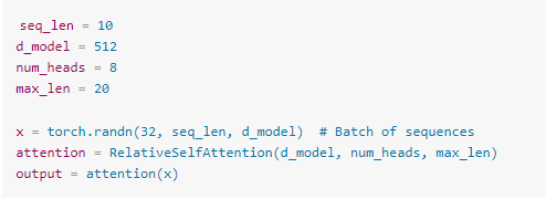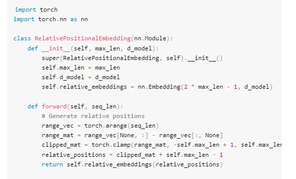 以下PyTorch代码展示了相对位置嵌入的核心实现(简化版),点击这里(github.com),查看代码仓库: