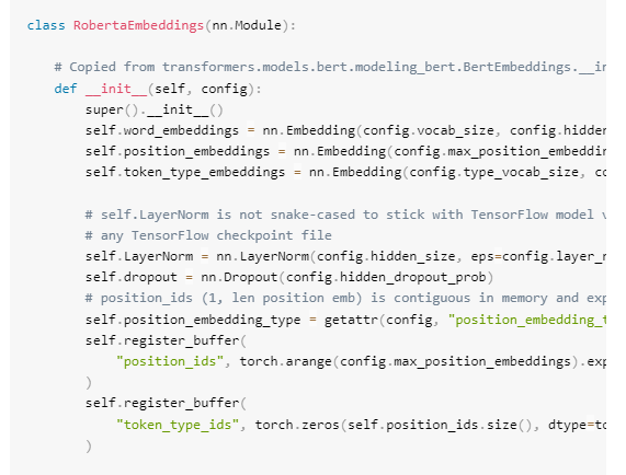 以RoBERTa模型代码为例展示学习式位置嵌入的实现: