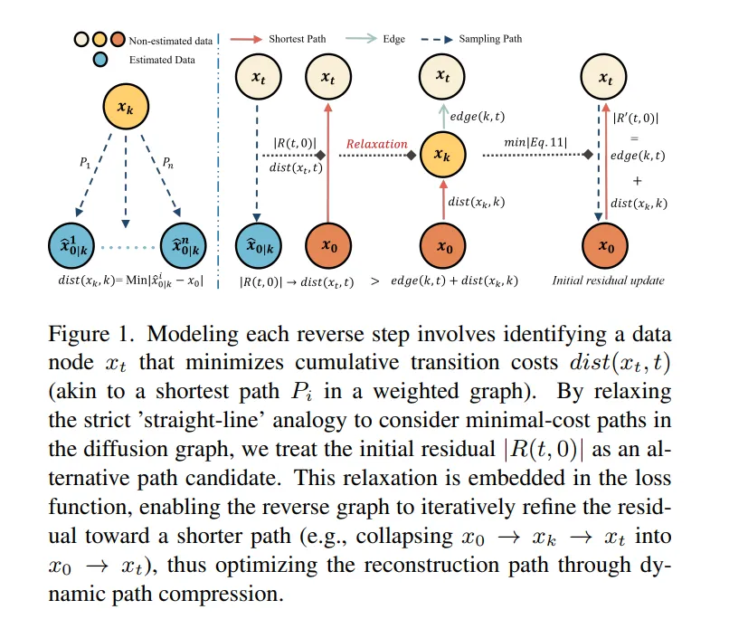在本研究中,我们提出了一种基于最短路径建模的新型去噪扩散模型,该模型通过优化残差传播(residual propagation),以提高去噪效率和生成质量。受到去噪扩散隐式模型(DDIM, Denoising Diffusion Implicit Models)及图论(graph theory)启发,我们提出的模型Shortest Path Diffusion Model(ShortDF),将去噪过程视为一个最短路径问题,旨在最小化重建误差(reconstruction error)。