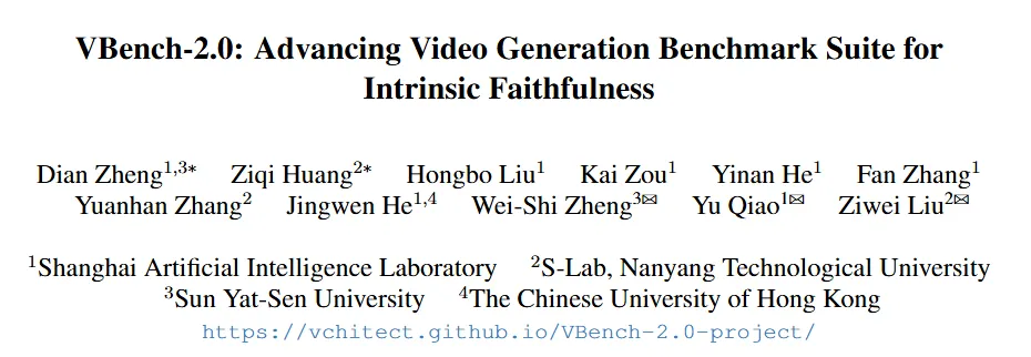 论文标题:VBench-2.0: Advancing Video Generation Benchmark Suite for Intrinsic Faithfulness
