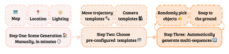 通过合成数据,本文得以模拟现实世界中多样的物体移动场景,例如光照强弱变化、物体透视变化及遮挡区域真实补全效果等。此外,本文设计了多种移动轨迹与光照条件,确保模型学习到高度泛化的视觉先验。